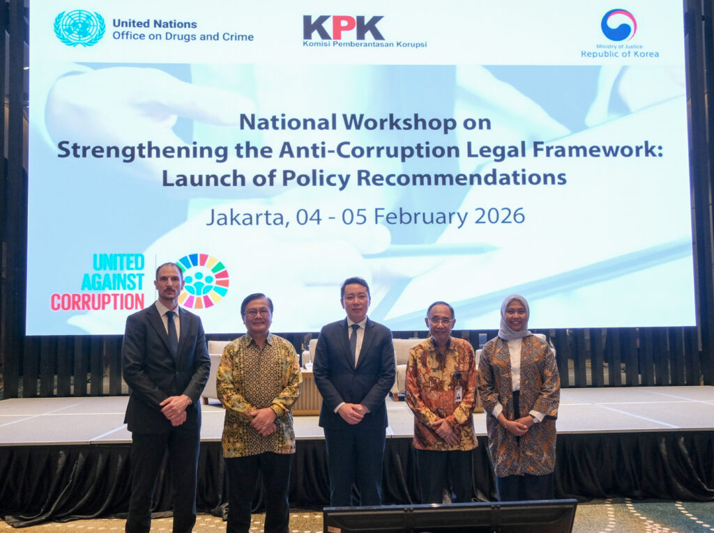 Jakarta, 5 Februari 2026 – Dewan Pengawas Komisi Pemberantasan Korupsi (KPK) menghadiri kegiatan National Workshop on Strengthening the Anti-Corruption Legal Framework: Launch of Policy Recommendations yang diselenggarakan oleh United Nations Office on Drugs and Crime (UNODC). Kegiatan ini merupakan bagian dari agenda reformasi hukum nasional untuk memperkuat implementasi United Nations Convention against Corruption (UNCAC) serta mendukung proses pembaruan Undang-Undang Tindak Pidana Korupsi (UU Tipikor).